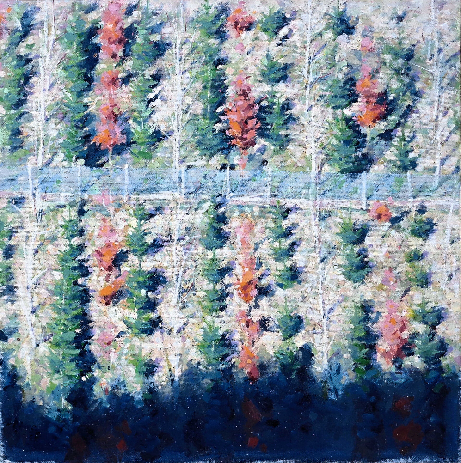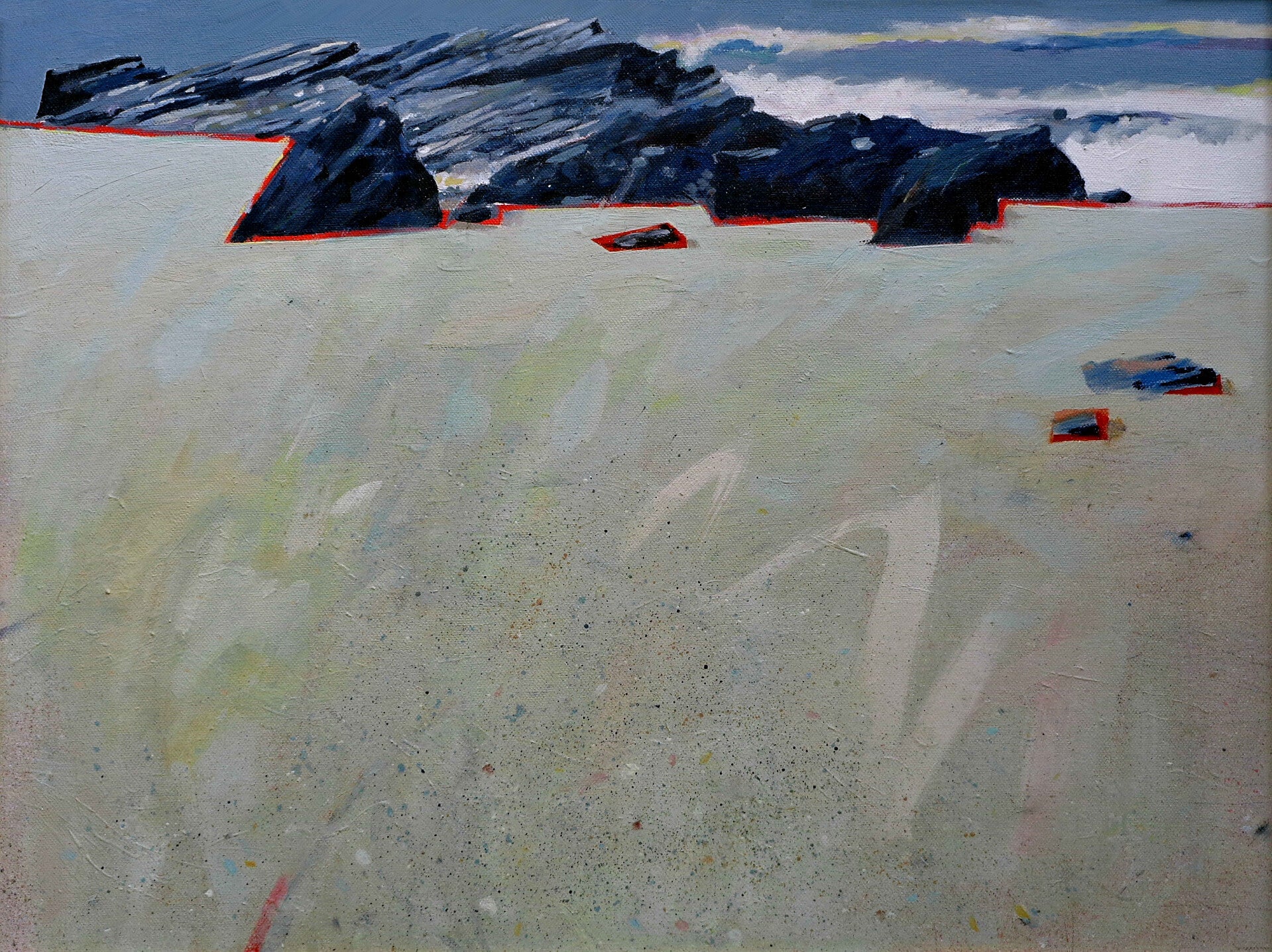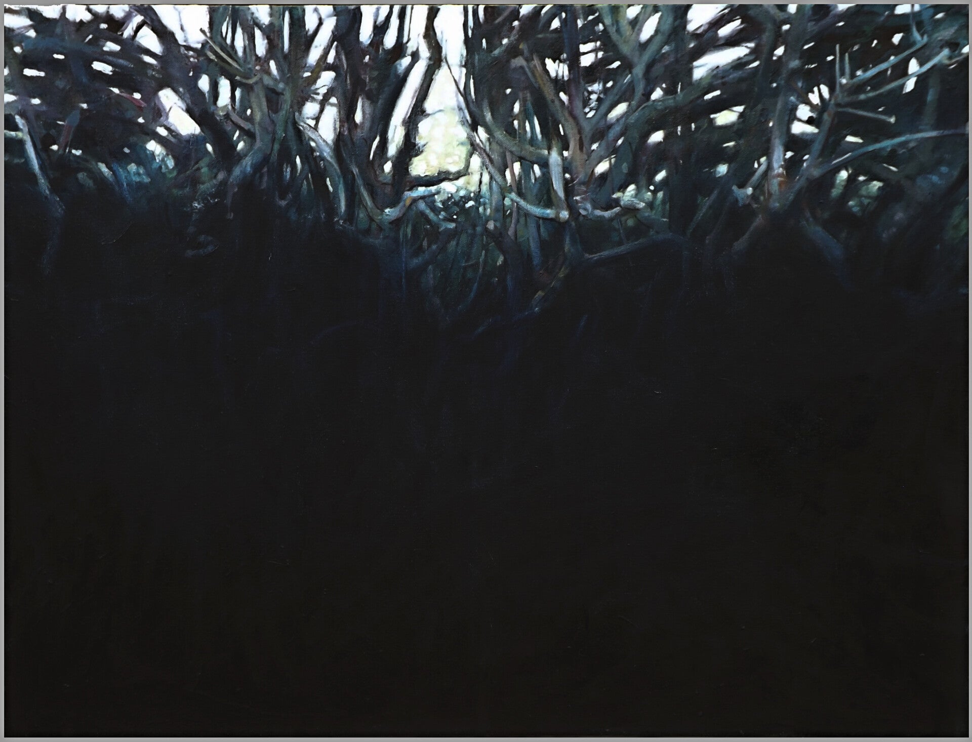 A varied group of paintings with a variety of subjects: landscape, urban and domestic. Most are representations of quite modest scenes and often focus on boundaries (actual / felt / imagined...), times and places where change occurs, where different elements meet, interact, raise questions, suggest thoughts and imply meanings.